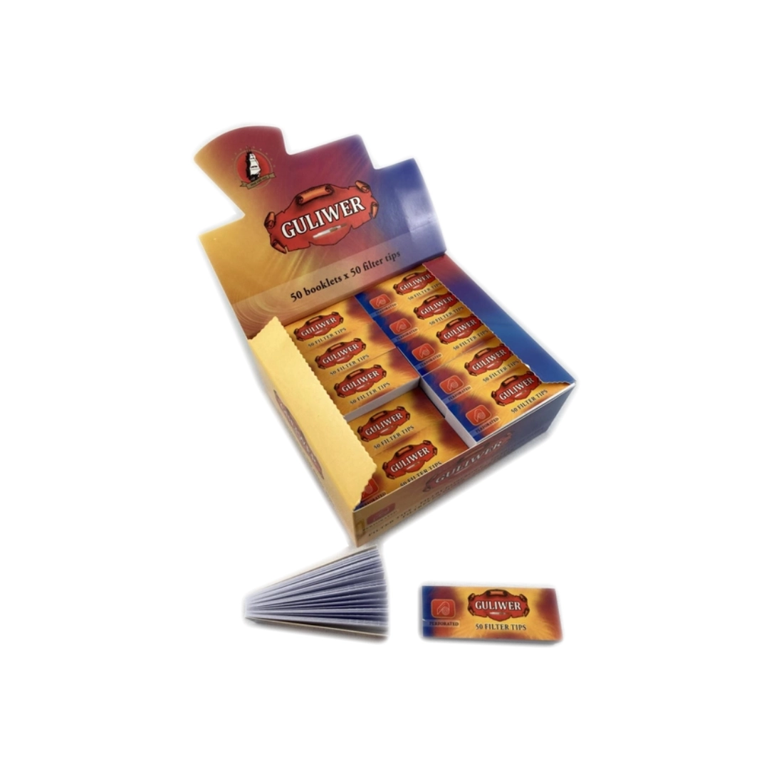 Фільтри GULIWER TIPS – найвищої якості фільтри для скручування сигарет вручну. Фільтри виготовлені з найвищої якості сировини. Дякуючи новітнім технологіям у фільтрах GULIWER зменшено вміст дьогтю і нікотину. Гарантія найвищої та незмінної якості.